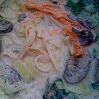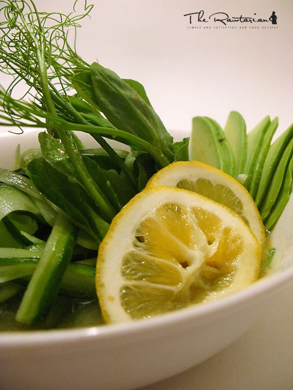 Choose from a variety of fresh raw shredded or spiralised vegetables like cucumber or zucchini noodles, carrot, mung bean sprouts, snow pea greens, cabbage, tomatoes, turnips or anything else that you have. In the picture above I used snow pea greens and cucumber sliced into wide noodles with a vegetable peeler and a few slivers of avocado.