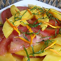 Tried it just now. Even though mangoes arent in season yet, i had to try and it was good. Didnt have cilantro, so i put some fresh basil in and it made it fresh :) Thanx!