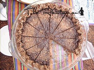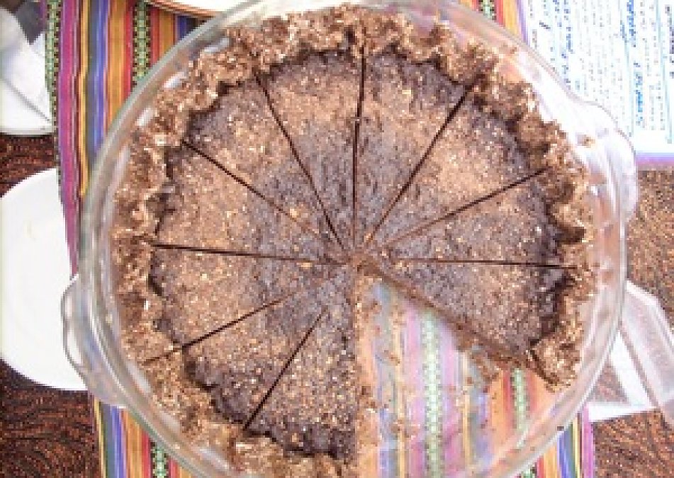 2. Sprinkle some cacao nibs into the bottom of your pie pan and press crust into the pan.