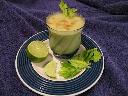 By Dia This is very tropical, sweet and tangy. The vanilla and lime go well together. If you are not used to eating greens you can leave out the celery, for a sweet snack! This makes a large smoothie for the day.