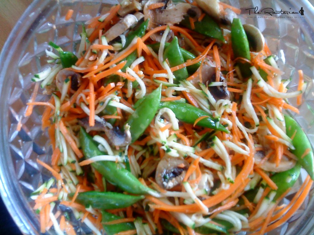 I didn't have the plum vinegar so used ACV instead; I imagine the plum gives it more of a fragrant flavour but the Apple was okay. Didn't have the peas but red pepper strips added some colour contrast in their stead.