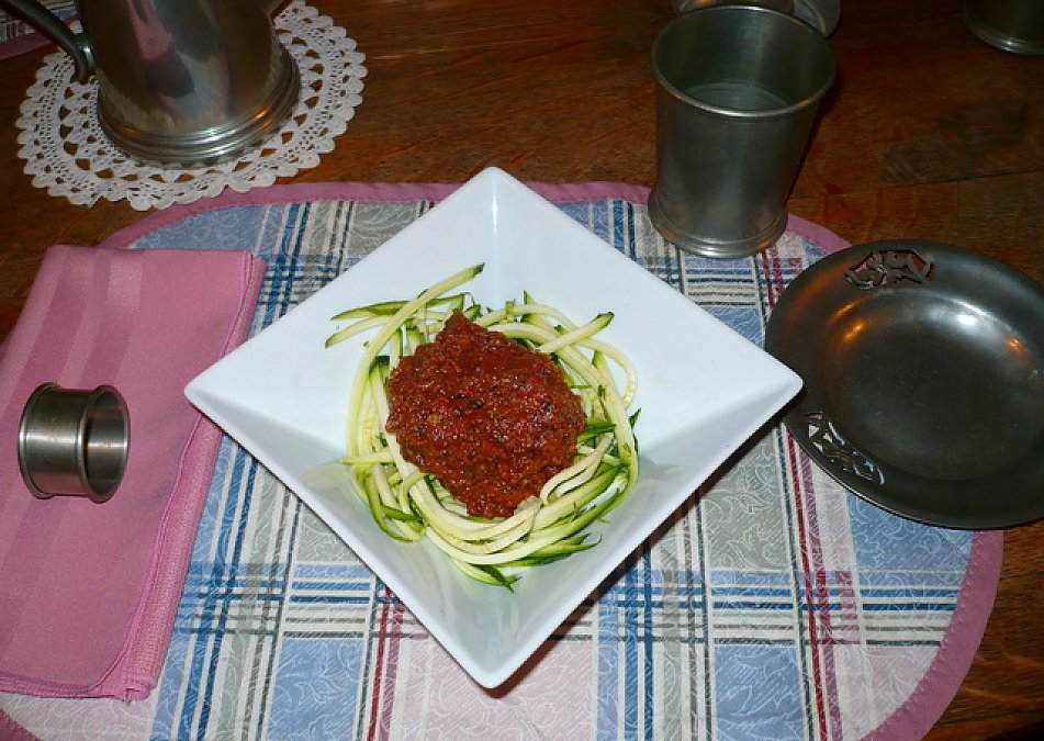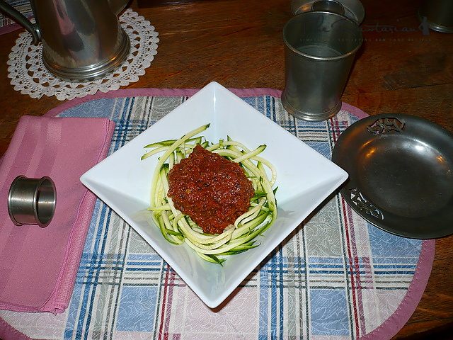 I used a mandoline for the zuchini spaghetti. Sorry it took so long for a photo.