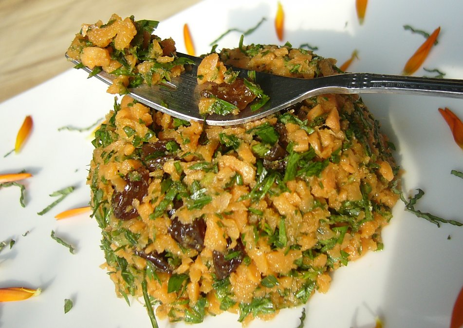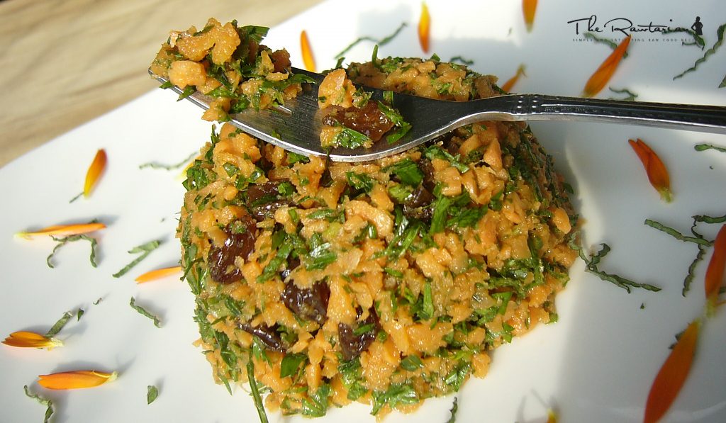 Hi, lovely photo. I make something similar, using parsley and goji berries, sometimes crumbled hazelnuts. In other words the dressed carrot is a great jumping off point for playing and creativity and individual preference.