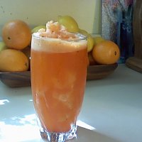 Next, to make the berry slushy part, run another 1/2 cup of berries through a juicer and strain. Blend this juice with 1 1/2 cup of ice cubes and 5 tablespoons of sweetener in a vita-mix until smooth slushy. Pour into a cup. Pour all of the berry juice that you made earlier over the berry slushy, and proceed to the next step.