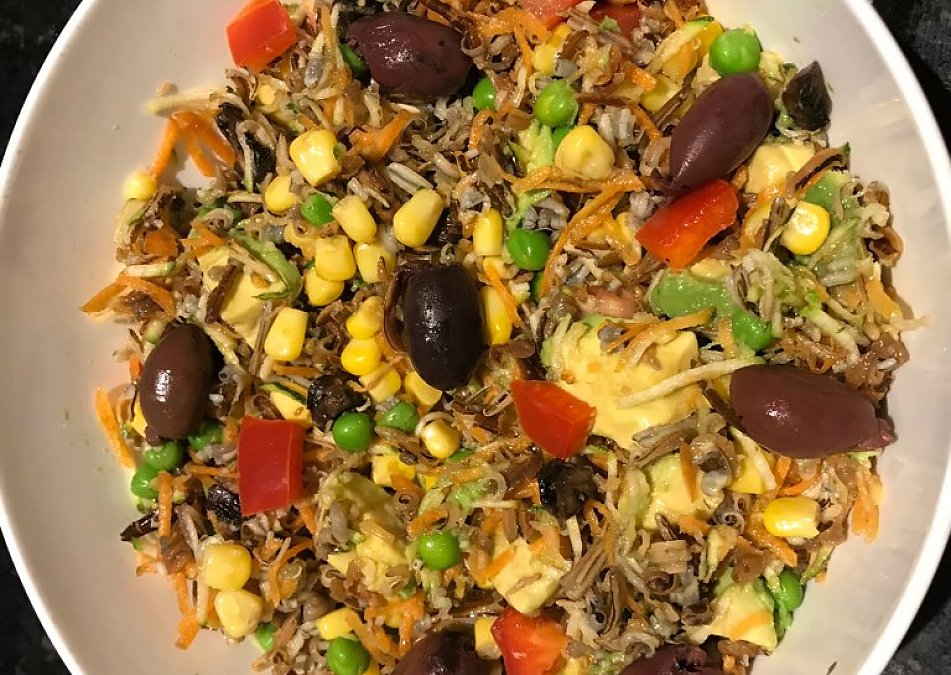 Add all the vegetable ingredients, mushrooms and fold through the rice.
