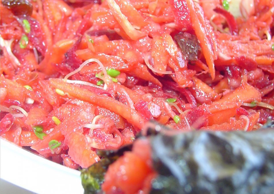By Nagev I know spring is comings but I just came up with a great salad made from local produce that keeps in the winter months. Its kinda like coleslaw. Tastes great to wrap some up in raw nori with sunflower seeds and some wasabi.