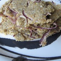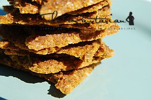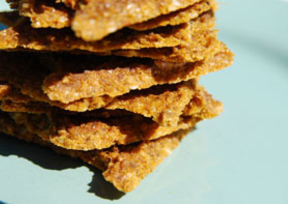 2. Spread out onto a non-stick dehydrator sheet, smooth to a relatively uniform thickness (about 1/4 inch) and dehydrated at 110 for 24 hours, flipping crackers and removing sheet after 14 hours.