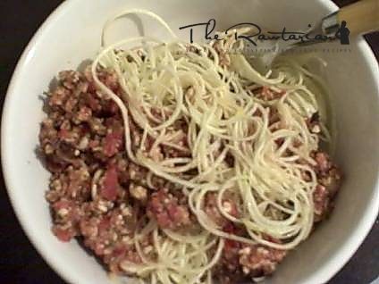 For the Marinara Sauce: (Process in the food processor) 1 bell pepper A handful of sun dried tomatoes (soaked 2 hours) 4 or 5 or tomatoes 1 clove garlic Basil (chopped) Oregano (chopped) A dash of Salt A dash of olive oil Cayenne Pepper Black Pepper 1/2 cup soaked almonds (I add these because I like the marinara sauce to be "meaty")