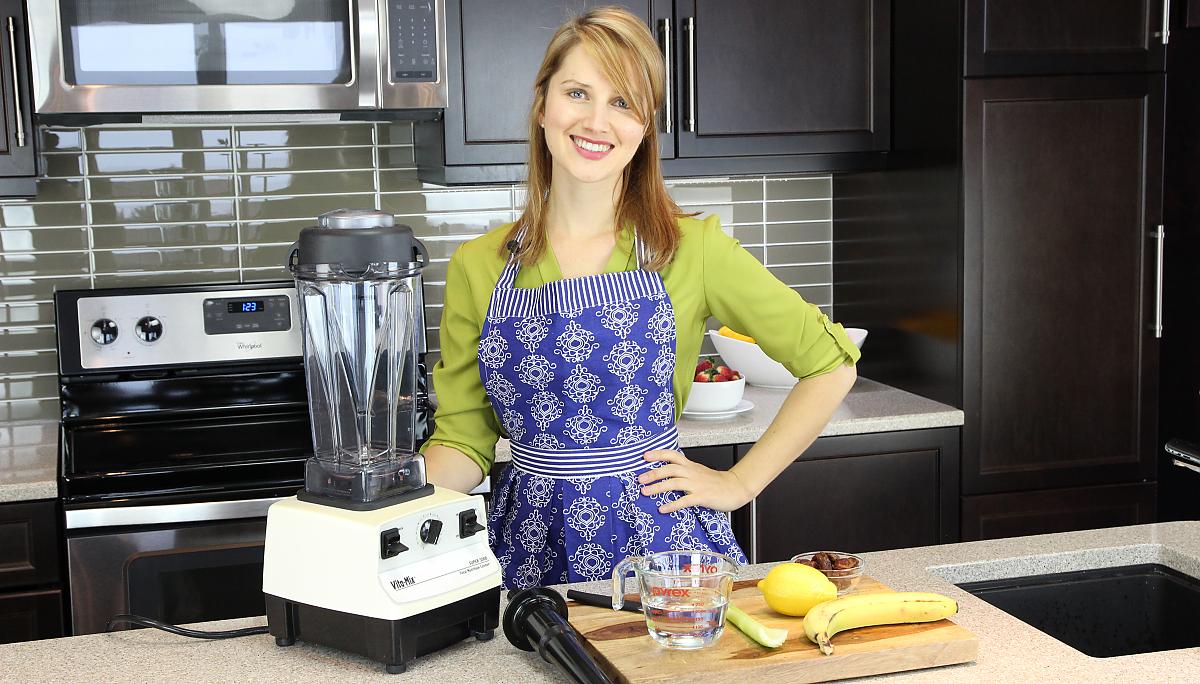 I’m Laura-Jane, The Rawtarian, from therawtarian.com. And today, in the Rawtarian’s kitchen, we are one of my favorite smoothies. It’s zingy. It’s refreshing. It’s my lemonade smoothie.