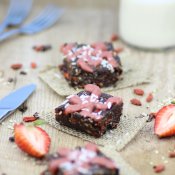 This is a pretty easy raw superfood brownie recipe that has a perfect chocolate taste. And paired with strawberry sauce? Divine!