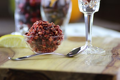This is a delightful seasonal cranberry apple raw pie recipe. It's a crustless pie, so there's only 1 step needed. A food processor is required. Serve from the freezer. It keeps very well.