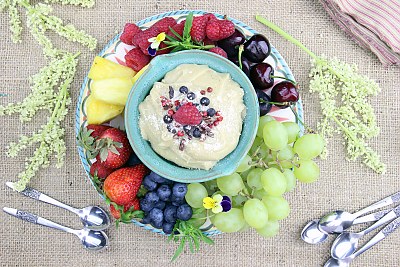 This cashew-based raw fruit dip has a similar texture to cream cheese icing, which I used to love... Creamy and almost tangy, mmm! A perfect raw fruit dip for sliced bananas, strawberries, fresh...