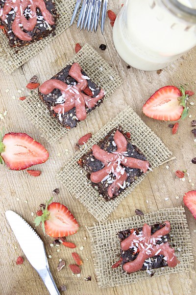 This is a pretty easy raw superfood brownie recipe. Just process most of the ingredients in a food processor, then mix in the goji berries, hemp hearts (and optional additional sweetener) by hand....