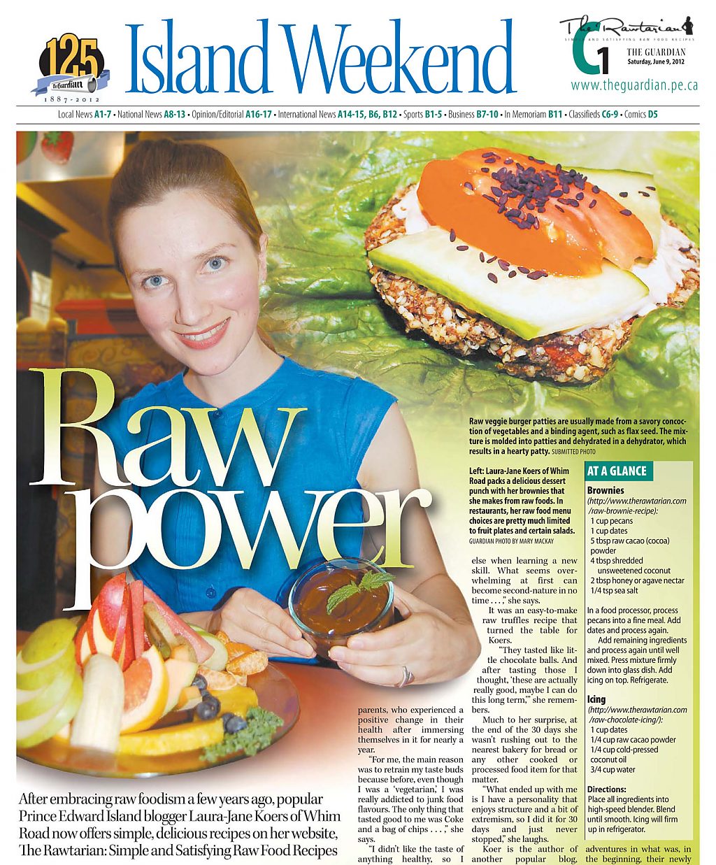 Full-spread story featuring Laura-Jane The Rawtarian and her story, including a 2-page spread in The Guardian newspaper.