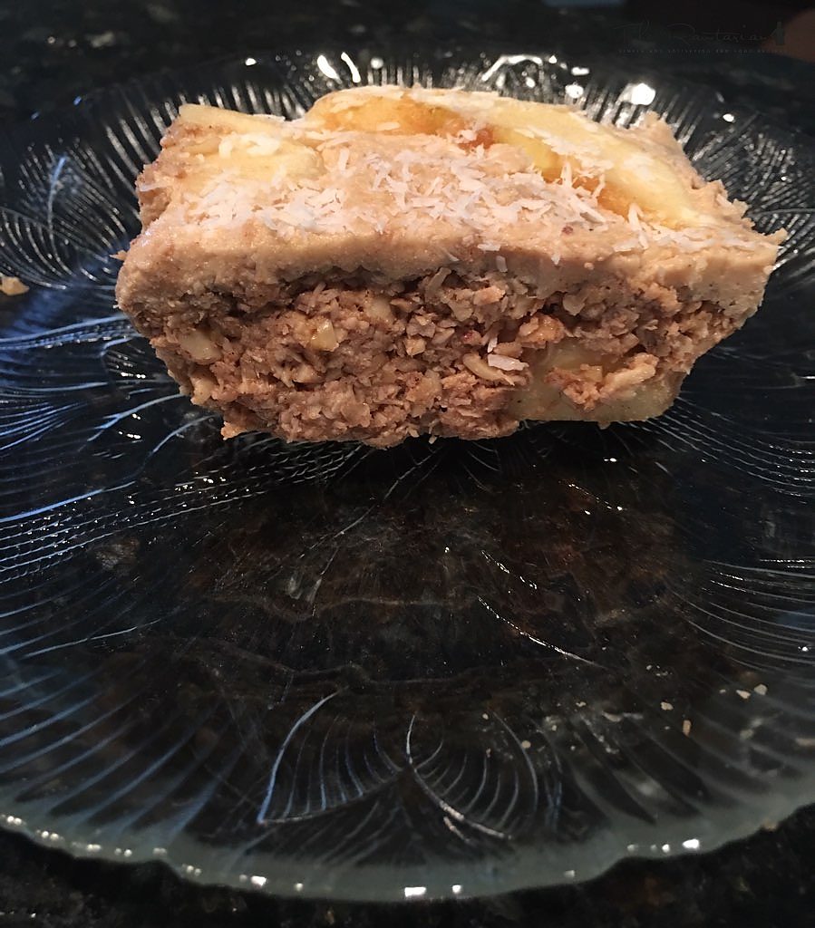 This tastes divine. Only trouble is that it is very crumbly. You couldn't eat it without a fork. Although the ingredients were pretty well chopped up, perhaps I should try processing them even finer next time. And, there definitely will be a next time!