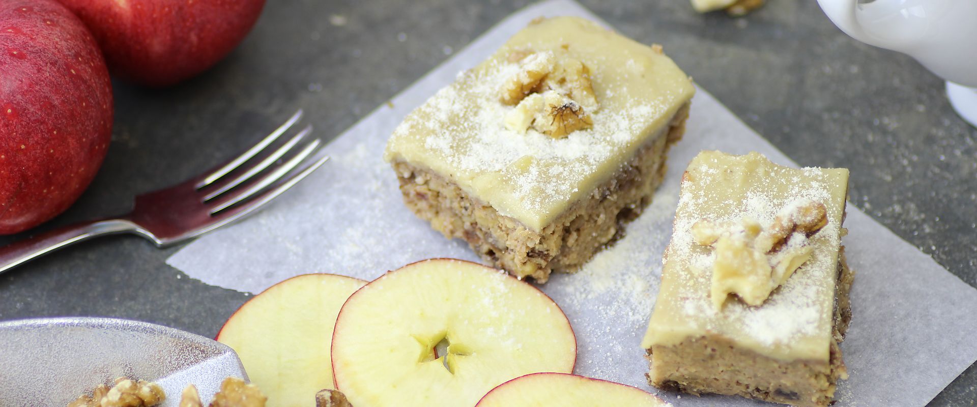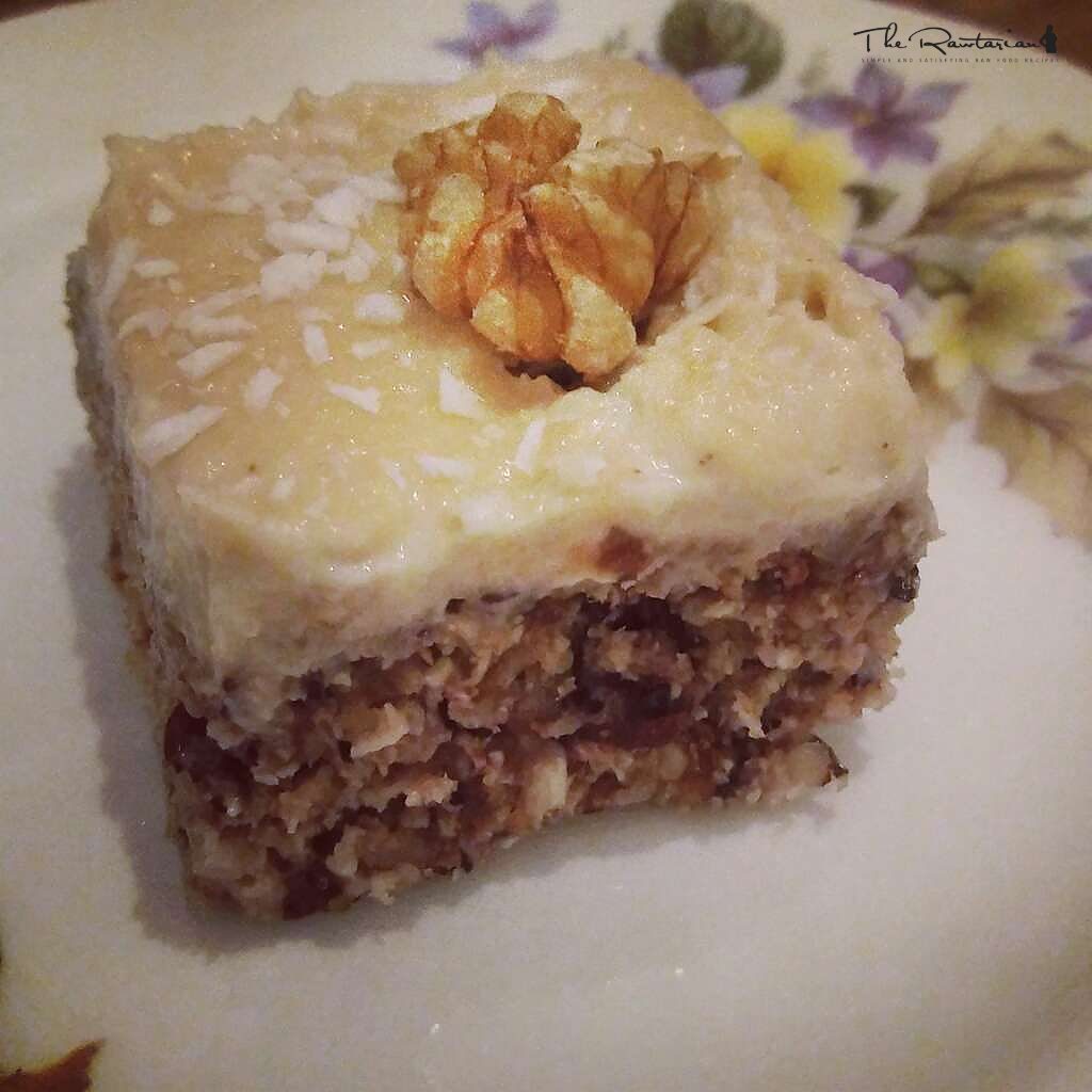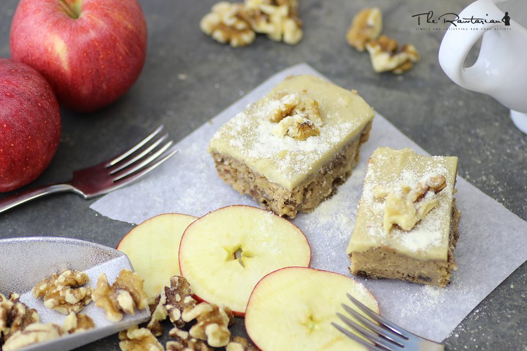 By The Rawtarian This raw apple walnut cake is inspired by my popular raw carrot cake recipe, but this recipe is made with apples instead of carrots and has some other minor tweaks, like less water, more spices and no sunflower seeds. One of the reasons that I love both the apple walnut cake and the carrot cake is for three reasons: (1) they are not too heavy tasting (2) so nice and moist! (3) they keep really well in the fridge and you can make them in advance for a party.