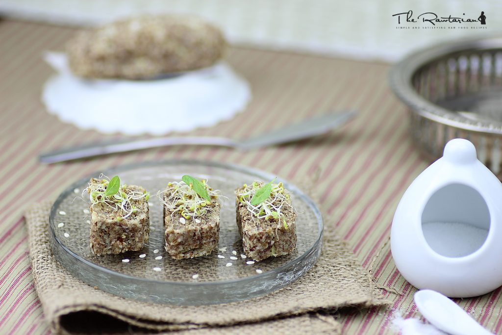 Giving props where props are due, this overall concept of spongy raw bread recipes were first invented by Chef Ito (as far as I know). Then, I recently watched an excellent tutorial by the delicious Russell James, who inspired me to create simpler and cheaper version of his bread recipe. Our recipes differ in that my raw bread recipe above doesn't require almond pulp or coconut meat - since I never have either.
