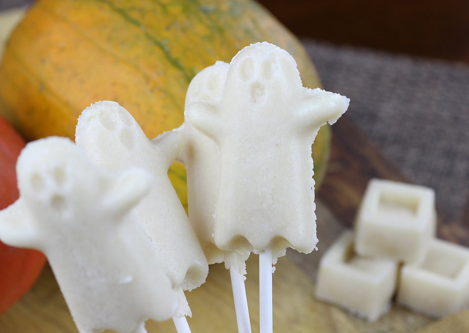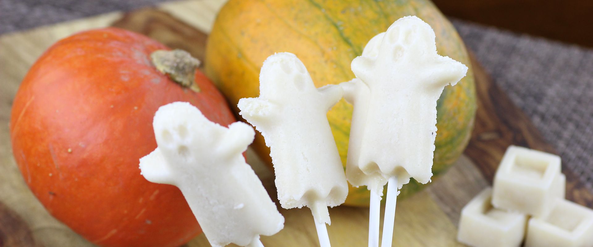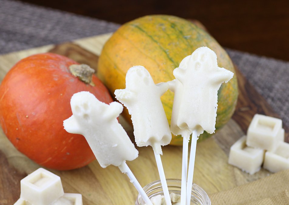 Don't fear though (fear, get it? Aaha, yes, I am punny around the holidays!), if you don't have a fancy ghosty chocolate lolly mold, you can make this recipe in a big dish instead (similar to my raw white chocolate recipe) and then break the candy into pieces for a less spooktastic experience. But the flavor will be the same :) And as for the flavor, it has a very sweet, almost white-chocolate flavor. It does have a coconutty taste, but for me it leans more towards white chocolate than coconut, in my opinion.