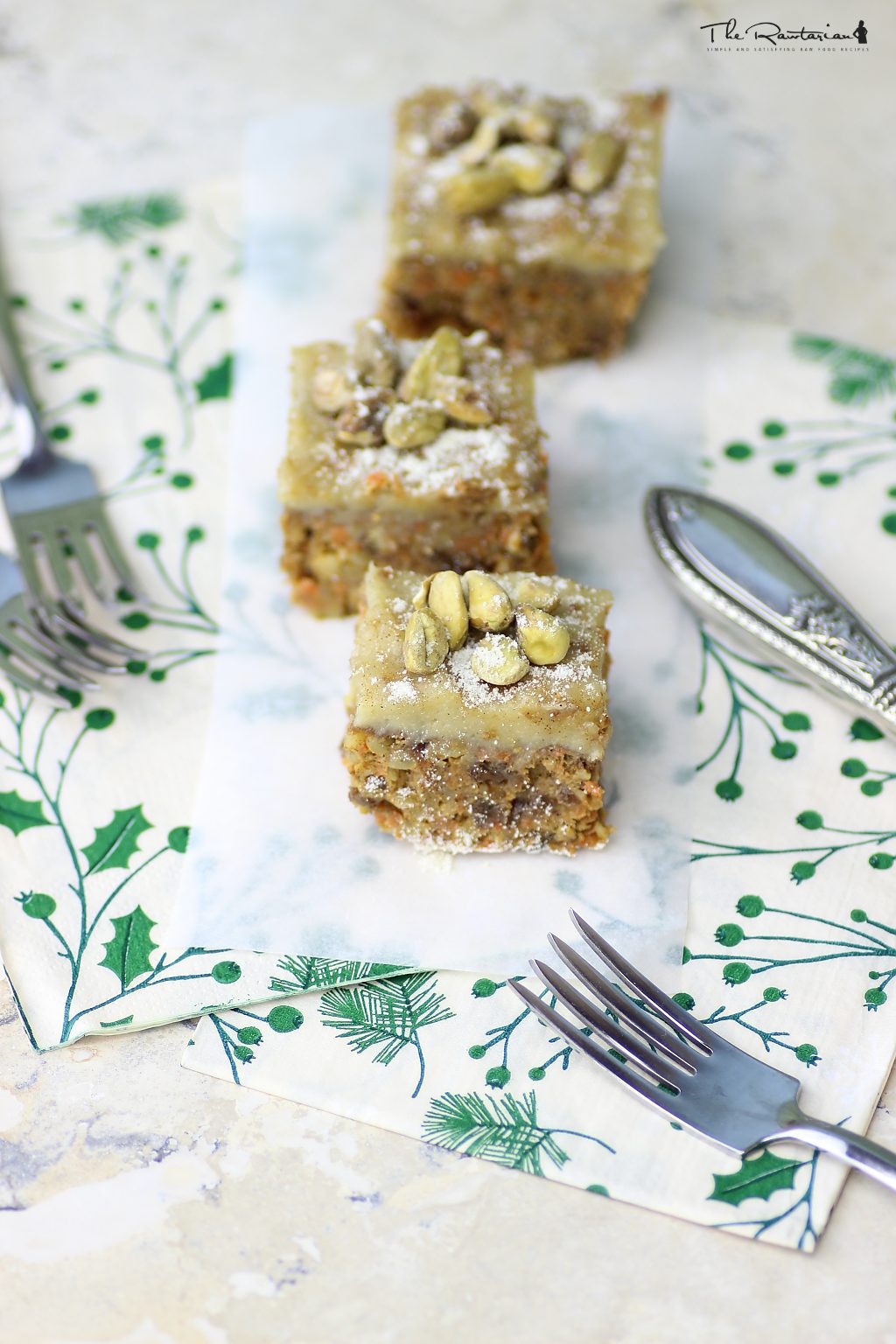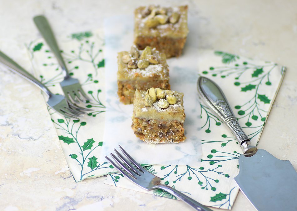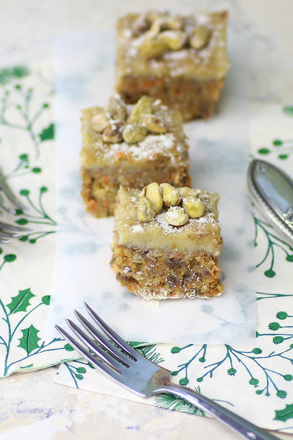 This recipe definitely needs nuts... including the walnuts (or pecans) and cashews in the icing..
