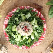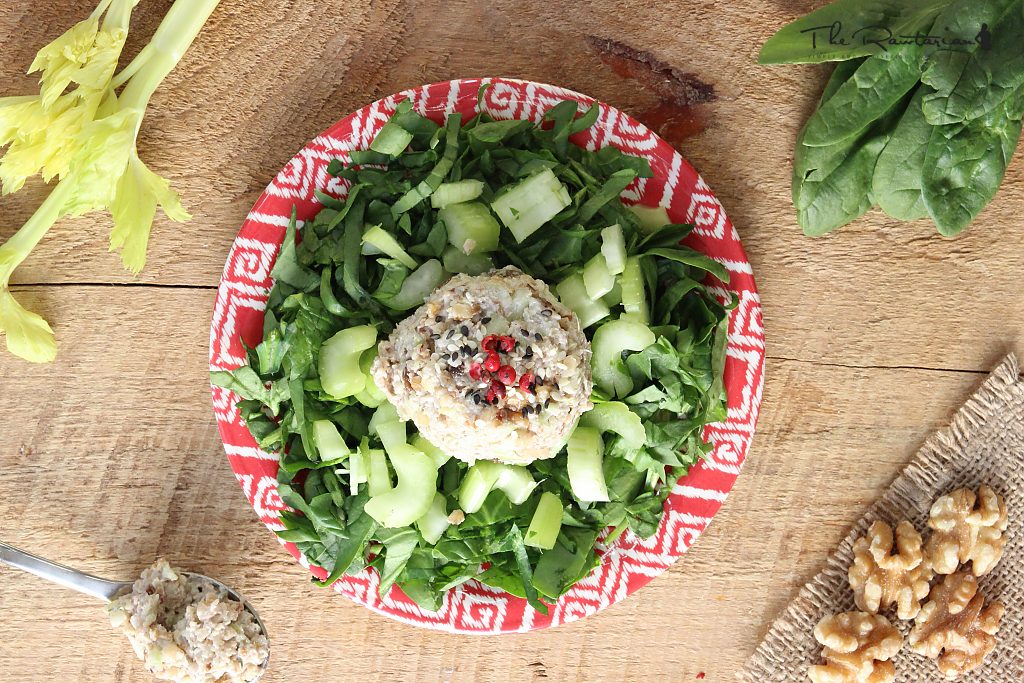 You'll be serving this spread on top of your salads. This spread keeps incredibly well, so you can even make it the day before if you like.