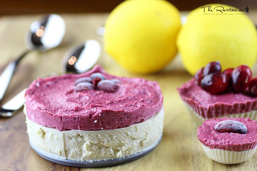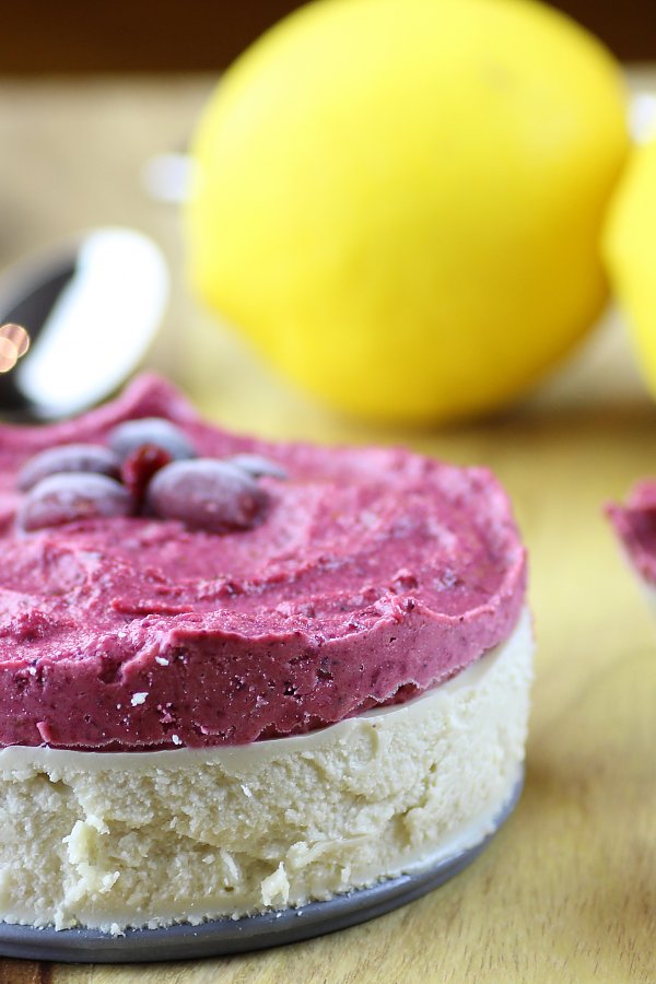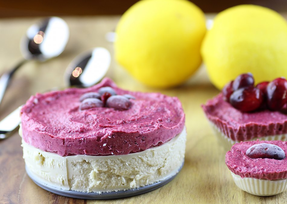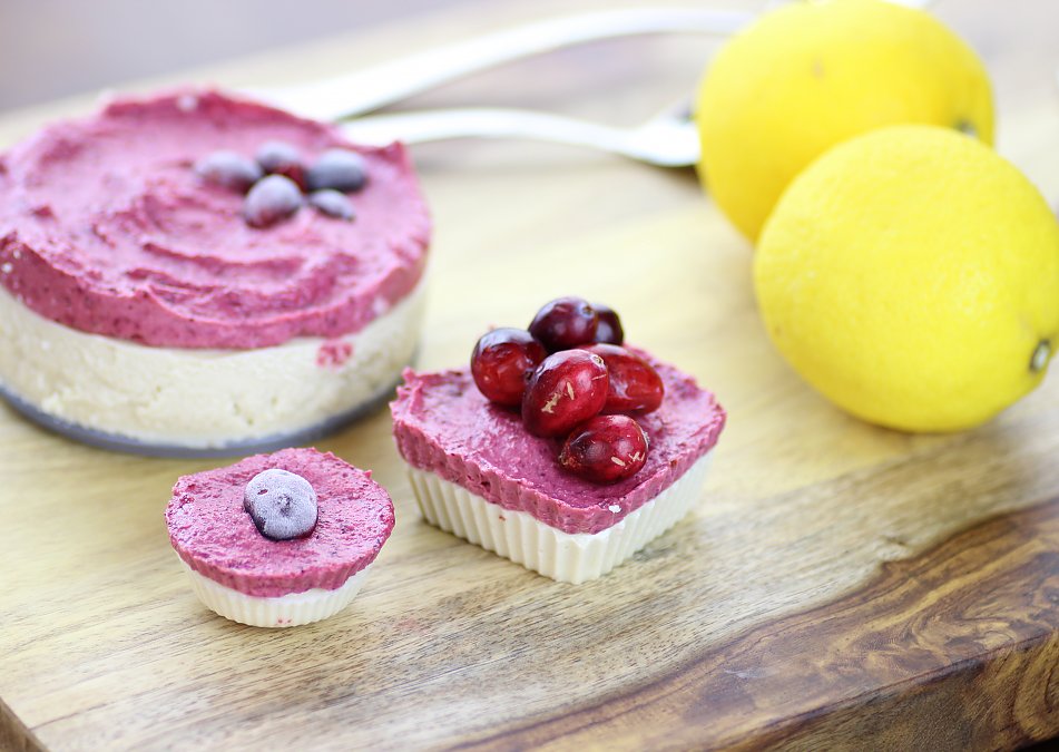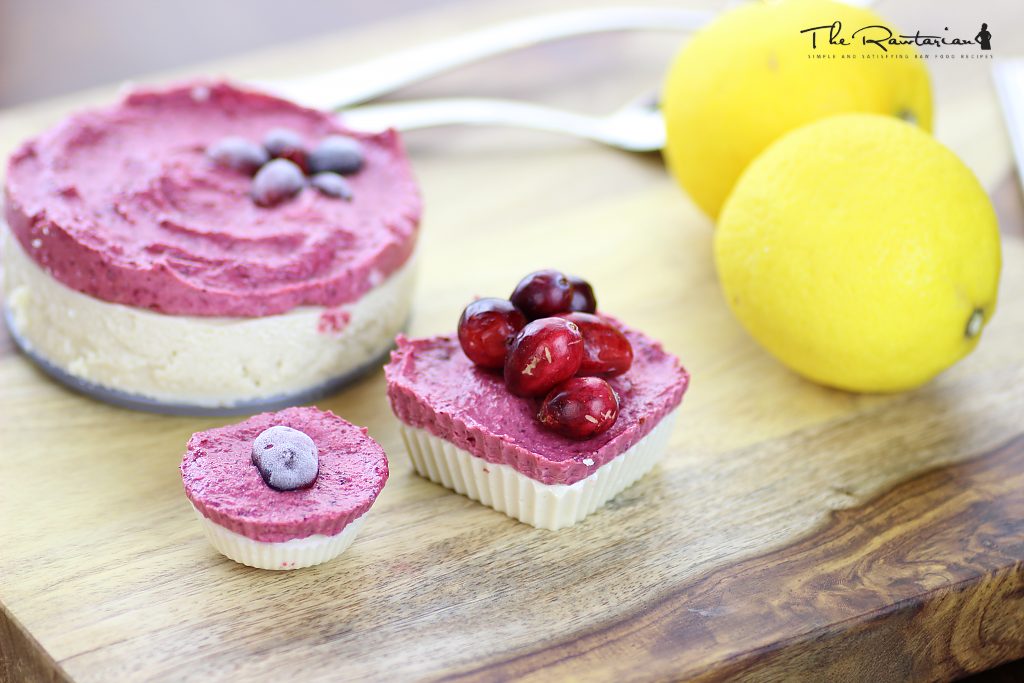 - 4. Hopefully your lemon cheesecake bases has firmed up a bit in the freezer (15 mins or so?), now use a spoon and plop the cranberry topping onto the lemon filling and smooth it out with the back of a spoon.