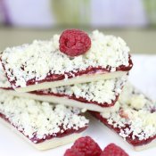 Aren't these Raw Raspberry Bars just so pretty? Coconut and cashews are the primary base ingredient, while raspberries and dates make for a dee-lish filling. These bars both look and taste great!
