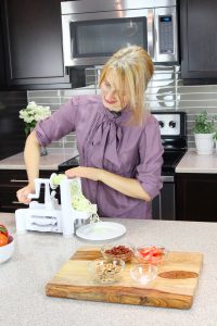 After three years of being raw I finally purchased a spiralizer. I don't know why I waited so long!! Spiralizers are perfect for making "noodles" out of zucchini and other squashes. Instead of a spiralizer, I used to just use a carrot peeler and manually slice "noodles." However, the spiralizer obviously makes for much better presentation and is actually way easier and faster too! Although it looks really complicated in this picture, it's actually really easy to use and this style is SUPER easy to clean. This is a fun gadget, but also something that I actually use all the time! Totally recommend it.