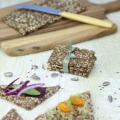 Yes, it's yet another raw flax cracker recipe. But hold on! It’s quite different I should say, because not only does it taste awesome, it’s also really easy to make with just a few ingredients. All you need to do is process all of the ingredients in a food processor, and when it becomes well blended but still chunky, spread the mixture onto two dehydrator trays lined with parchment/Teflex. Put them in the dehydrator at 115 degrees, and after an hour score the crackers with a knife, then reduce the heat to 105 degrees. After dehydrating for another 6 hours, flip the crackers, remove the parchment/Teflex, and dehydrate for another hour until they become cracker-like. I know it's tempting to nibble, but try to wait until they're done so you can enjoy your tasty raw flax crackers!