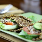 Now here’s a raw food dehydrator recipe that doesn’t need too many ingredients, but can make enough for three Excalibur trays. Start by processing the sunflower seeds into a fine meal, set aside, then process the peeled onions in a food processor, but make sure they don’t turn mushy. Using a spoon, mix the onions with all of the other ingredients in a large bowl and spread them onto parchment-lined dehydrator trays. For the first hour, dehydrate the bread at 120 degrees before reducing the heat to 105 degrees for the next 6 hours. Remove the parchment at some point before it finishes dehydrating and flip the bread over. You can dehydrate it for another 4 hours or longer if you want it to be crispier. It’s really all up to you how you want your savory raw onion bread recipe to turn out, so go ahead and try them!