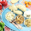 To make this delicious raw sesame seed bar recipe, you don’t need any equipment. Simply mix sesame seeds, raisins, shredded coconut, flaxseed meal and sea salt in a bowl. Then add tahini, coconut oil, maple syrup and pure vanilla extract to the mixture and continue stirring. Transfer and press down the mixture into a large dish, cover and store in the freezer for at least an hour. It’s best to eat these chewy snack bars when chilled, so you might want to bring an ice box or some kind of cooler in your car to keep them chilled if you plan to snack on them later.