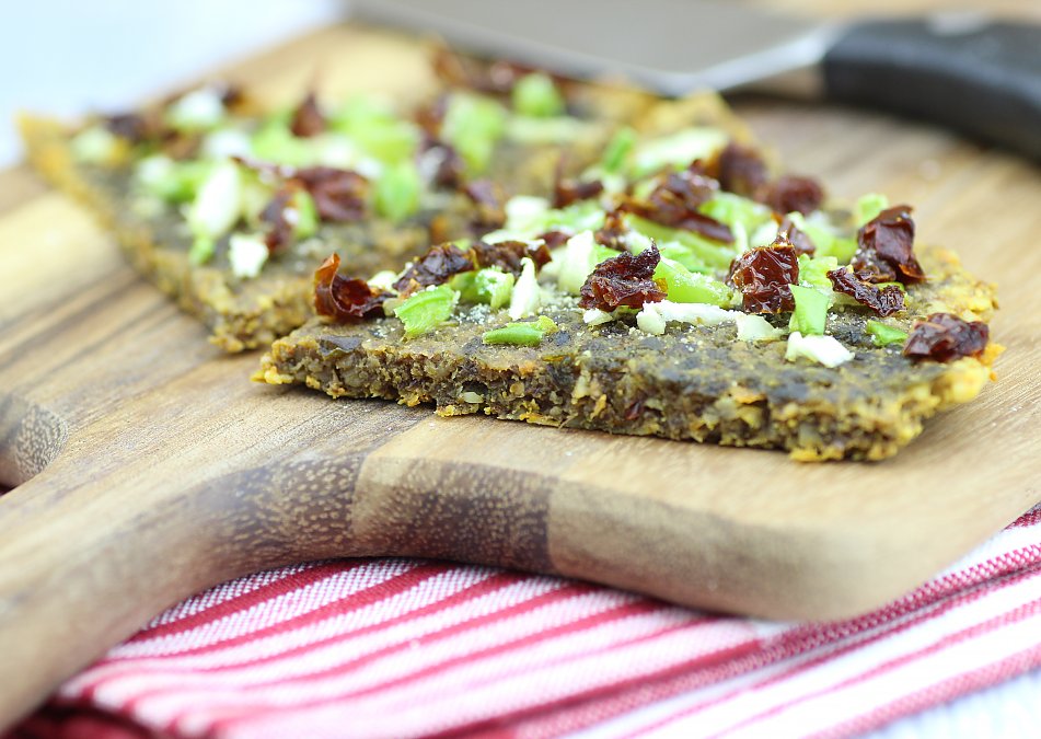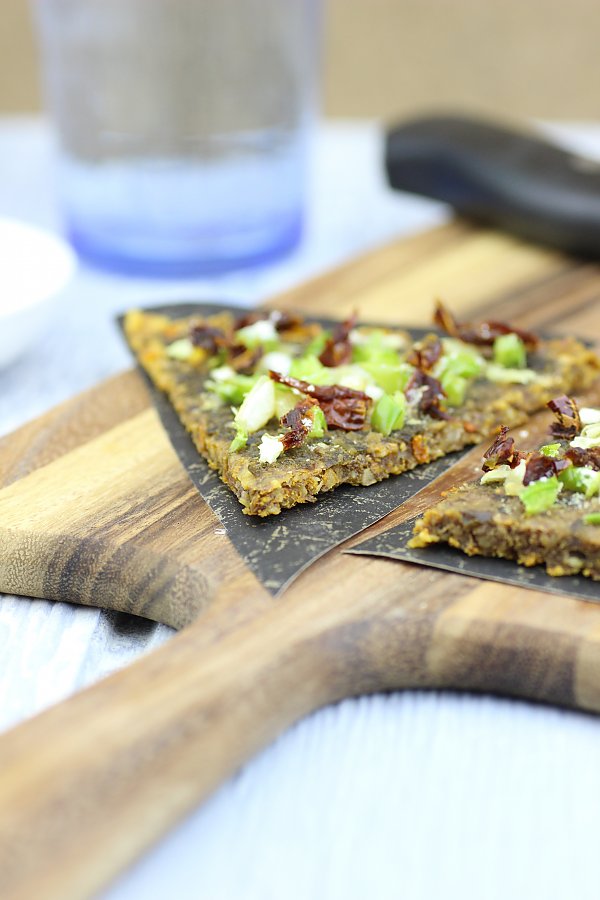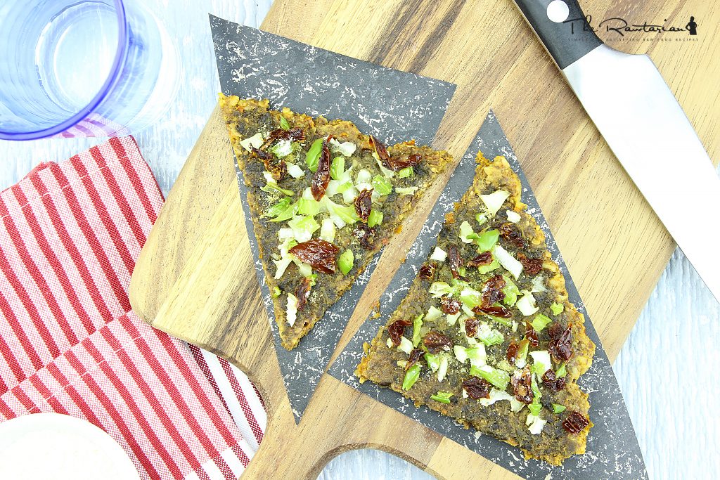 So here you go. I have finally tackled this for you: a super easy and quick raw pizza crust recipe that actually tastes awesome and is a perfect base for raw pizza because it has a very neutral flavor with just a hint of Italian pizza spices.