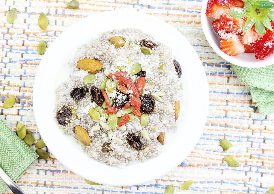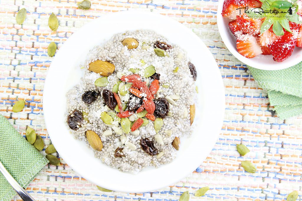 I blended my chia seeds, raisins, coconut, agave nectar, and water and then put fruits on top. Tastes amazing! This is a delicious recipe!! Thank you!
