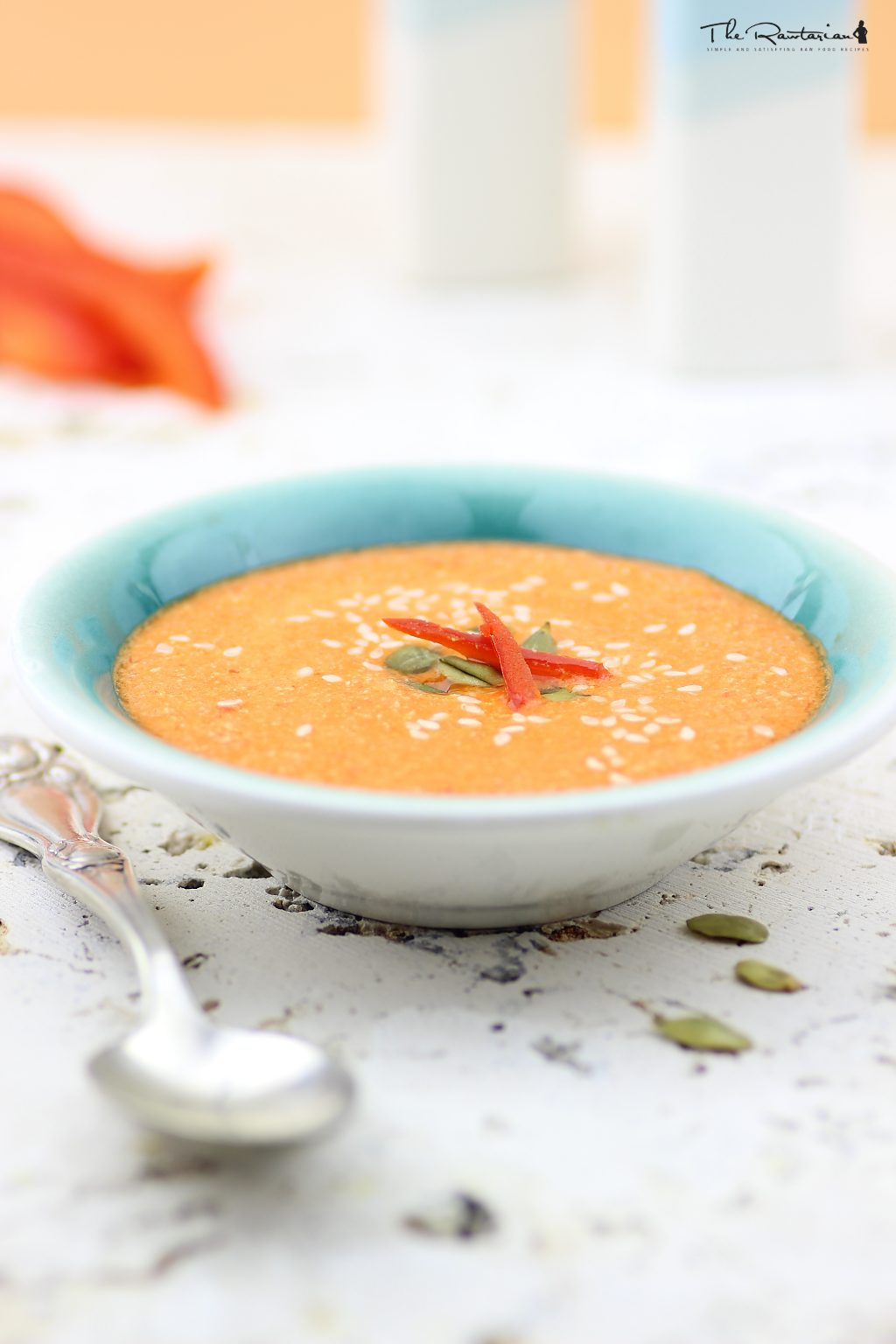 By The Rawtarian Big thanks to Julie K and her comment on my raw tomato soup recipe for inspiring me to modify one of my existing raw soup recipes to come up with this super creamy raw red bell pepper soup! This recipe is super simple and requires only a blender to make.