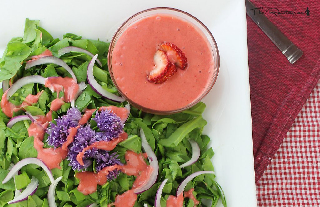 By The Rawtarian This raw strawberry vinaigrette reminds me of classic raspberry vinaigrette - but without the "grit" of raspberry seeds. And with only four ingredients, it's a snap to whip up in the blender!