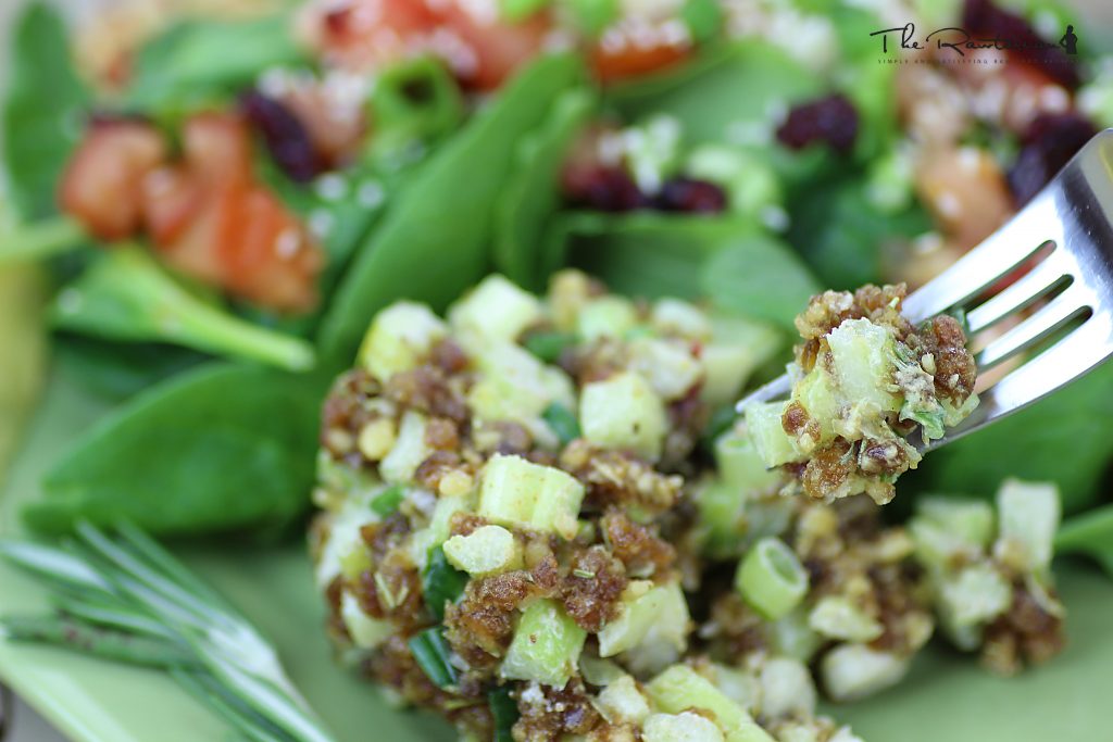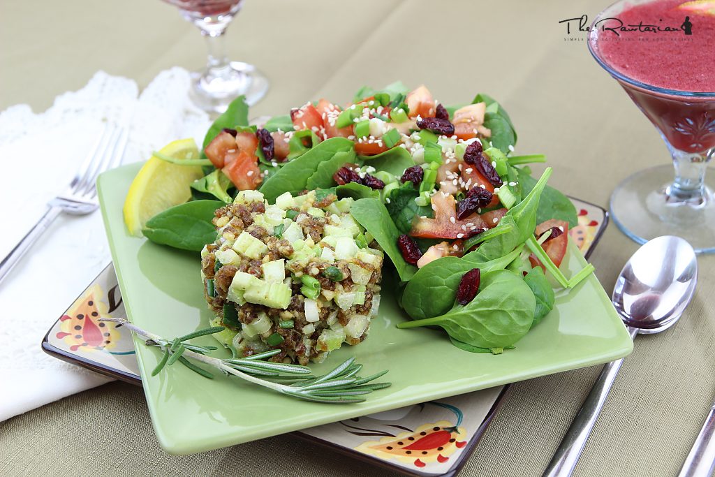Raw stuffing is easy to make around the holidays (or any time) if you have a food processor. Key ingredients: walnuts, dates and celery.