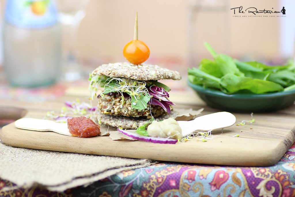 By The Rawtarian Wondering how can you have a raw veggie burger without meat or bread, etc? Just get raw-creative!