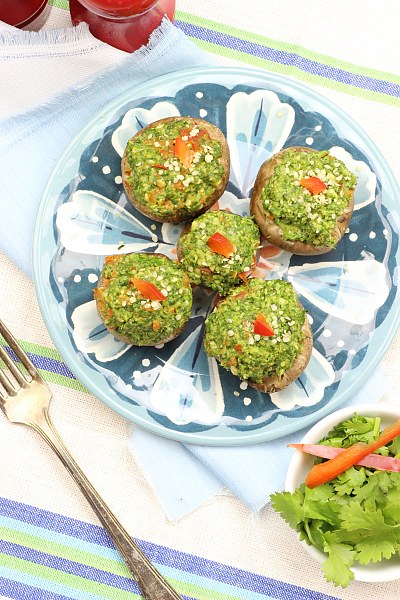 Raw stuffed mushrooms are awesome for entertaining. They are best served right away. Try to dehydrate these as high as possible.