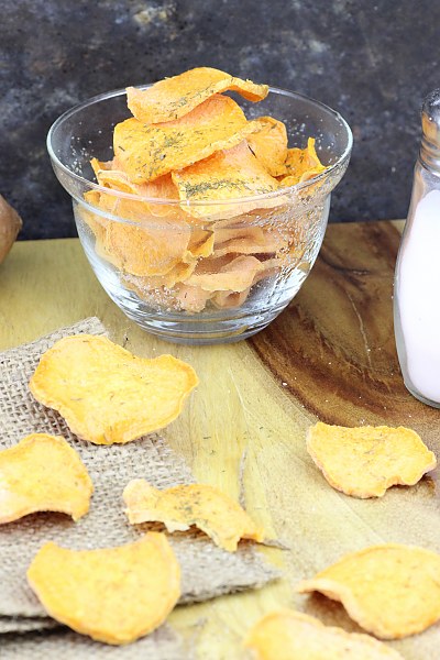 Raw yam chips are a nice alternative to kale chips. A dehydrator is required for this recipe.