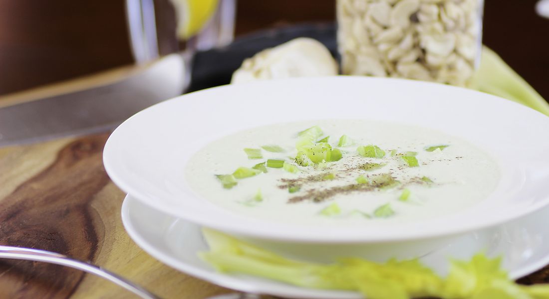 This raw cream of celery soup uses cashews as the cream base. It tastes surprisingly like traditional celery soup - but without the dairy. A blender is required.