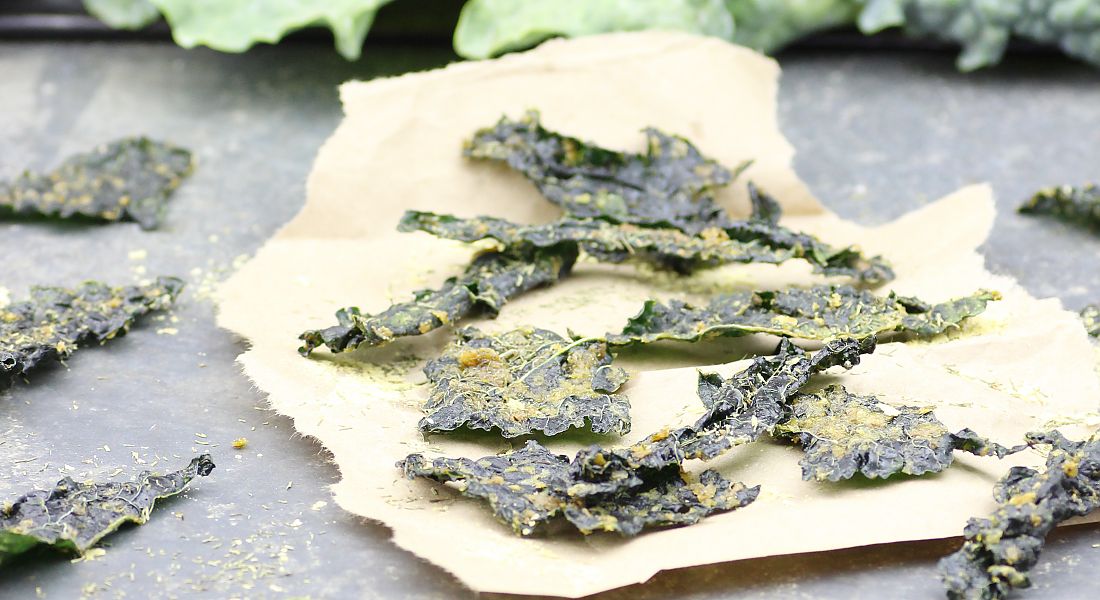 Kale chips give you that satisfying crunch. This raw kale chip recipe requires a dehydrator.