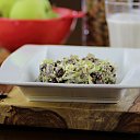 This raw chicken salad recipe gets that chicken-salad-like texture by using raw cashews. This recipe is surprisingly quick to whip up if you have a food processor.