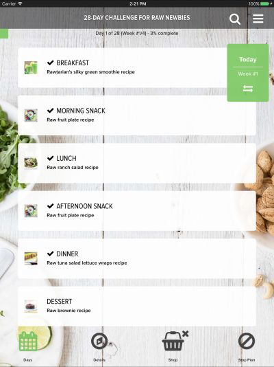 - App automatically updates on-the-fly with the latest Rawtarian meal plans