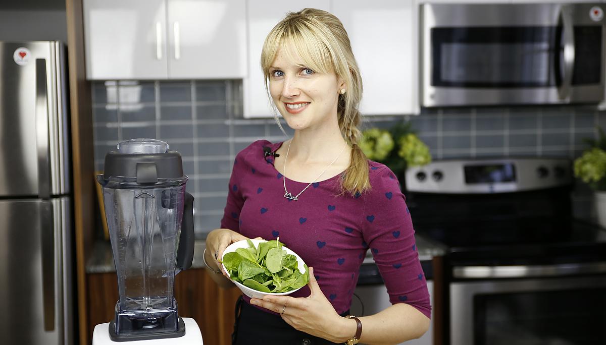 The thing that a blender does really well that a crappy blender doesn't is eliminate all the bits of, say, your spinach, or all those little bits so that this is super smooth and delicious.